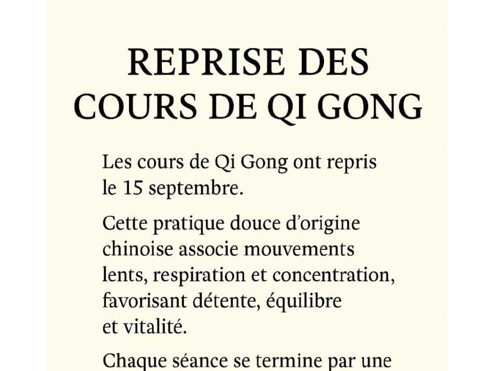 Reprise des cours de Qi gong les lundis à 18h30 à la salle Jules Ferry.