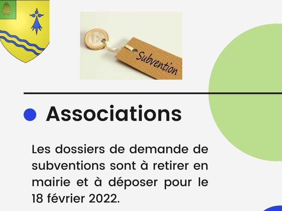 Les dossiers de demande de subventions sont à retirer en mairie et à déposer pour le 18 février 2022.