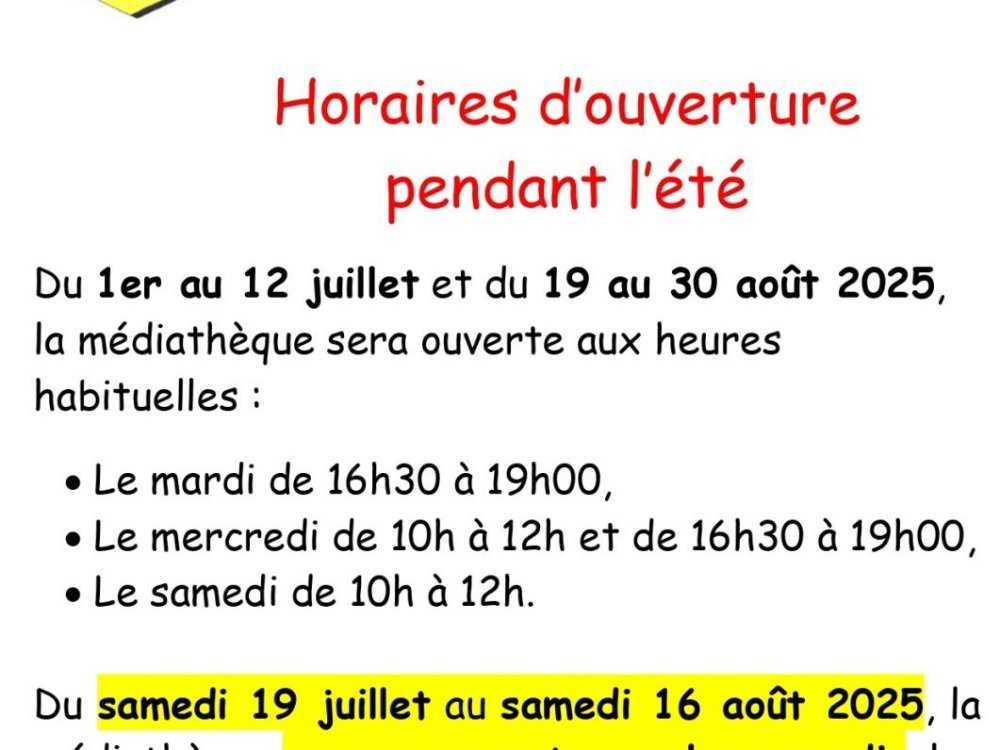 Horaires de la médiathèque été 2025