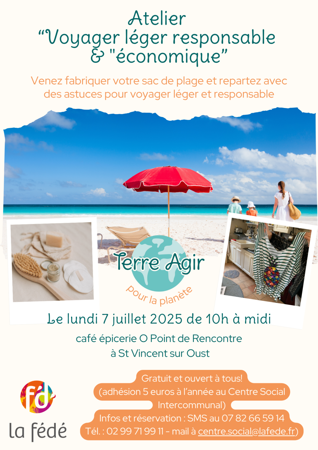 Venez fabriquer votre sac de plage et repartez avec des astuces pour voyager léger et responsable.