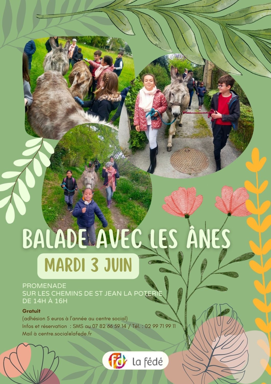 Balade avec les ânes Mardi 3 juin de 14h00 à 16h00 St Jean la Poterie Promenade sur les chemins de St Jean La Poterie