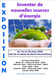 Exposition Inventer des nouvelles sources d’énergie Du 1er au 29 mars Hall de la mairieMairie 13 place de la mairie 56350 Saint Vincent sur Oust