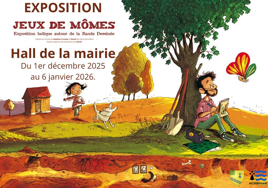 Exposition à la mairie : jeux de mômes Du 1er décembre 2025 au 6 janvier 2026 Hall de la mairie. Exposition de la médiathèque départementale du Morbihan : jeux de mômes Exposition visible aux heures d’ouverture de la mairie.