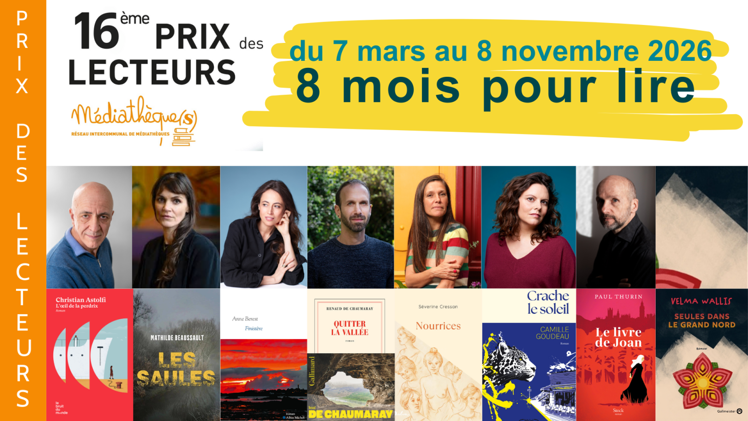 Prix des lecteurs 2026 Du 7 mars au 8 novembre Médiathèque de Saint Vincent sur Oust 16ème Prix des Lecteurs du 7 mars au 8 novembre 2026. 8 mois pour lire.