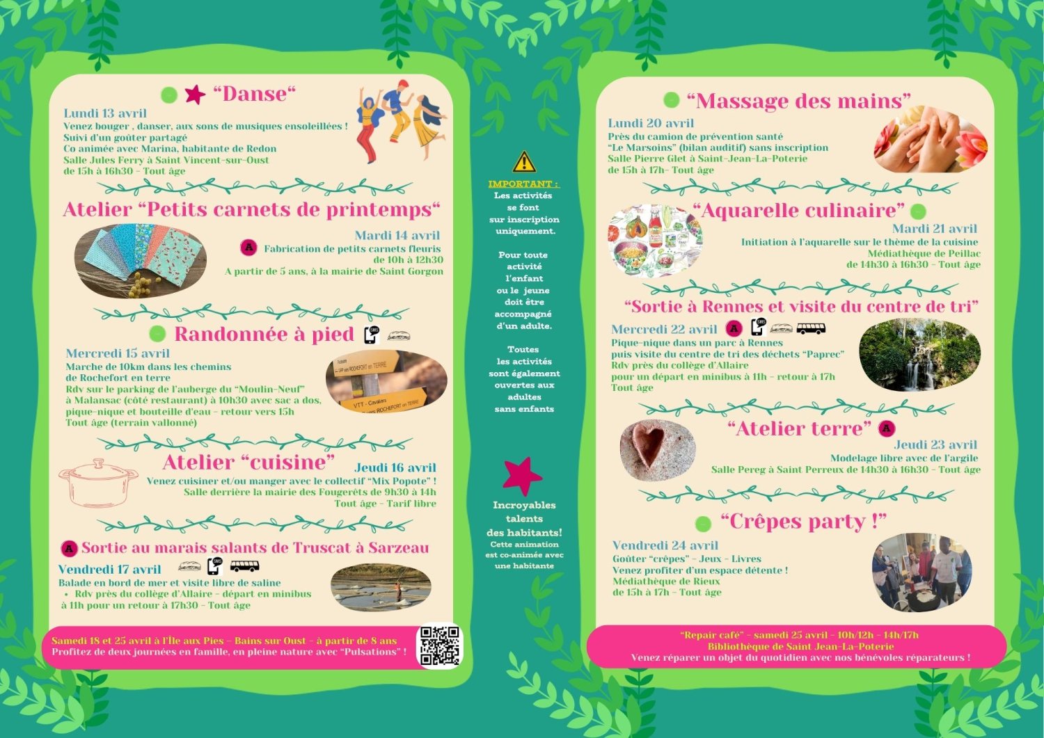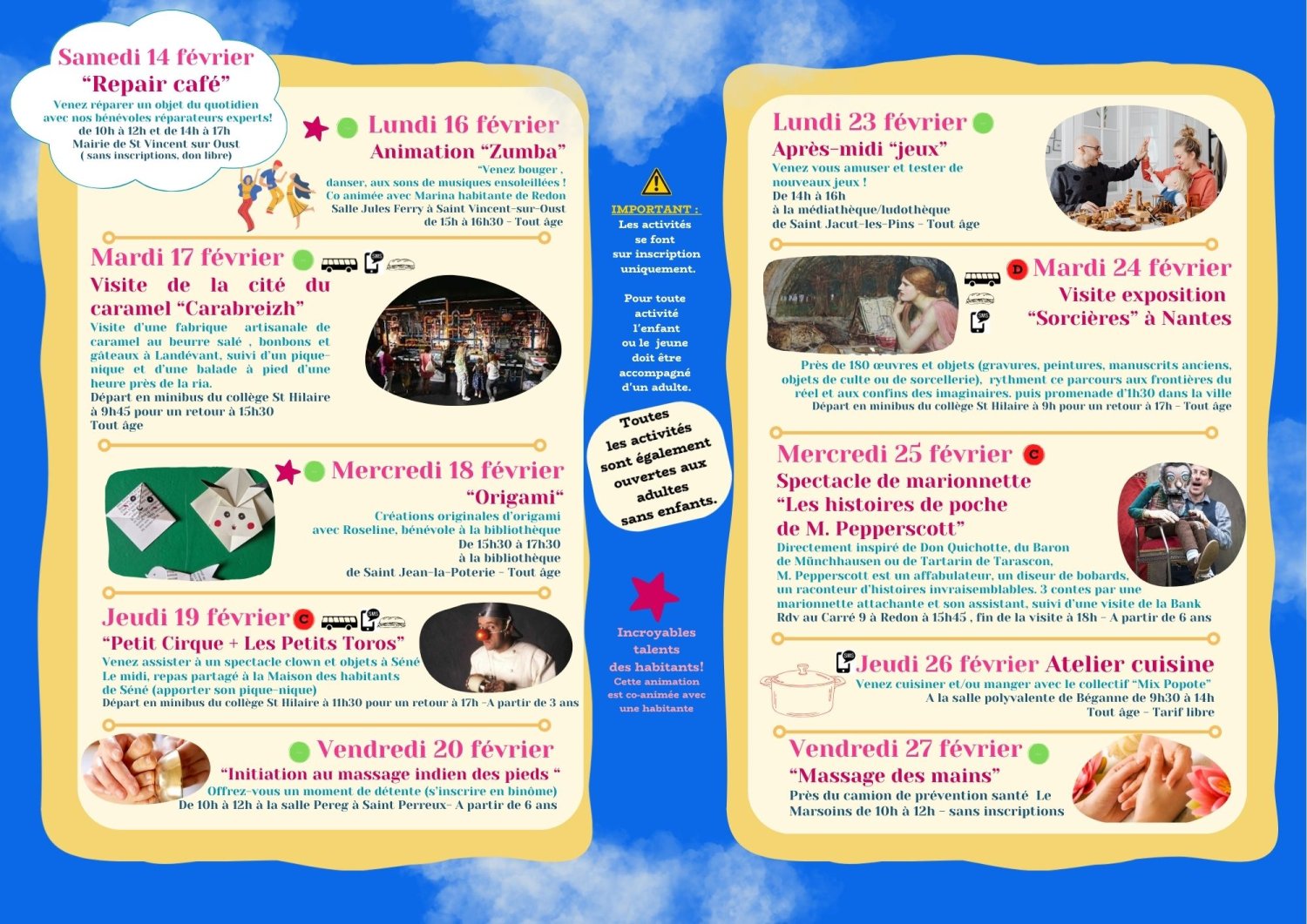 Différents moyens sont envisagés : ateliers parents-enfants, soirées, sorties familiales... Une programmation ouverte à un large public, des animations gratuites ou à prix modiques. Deux programmes sont publiés par an.