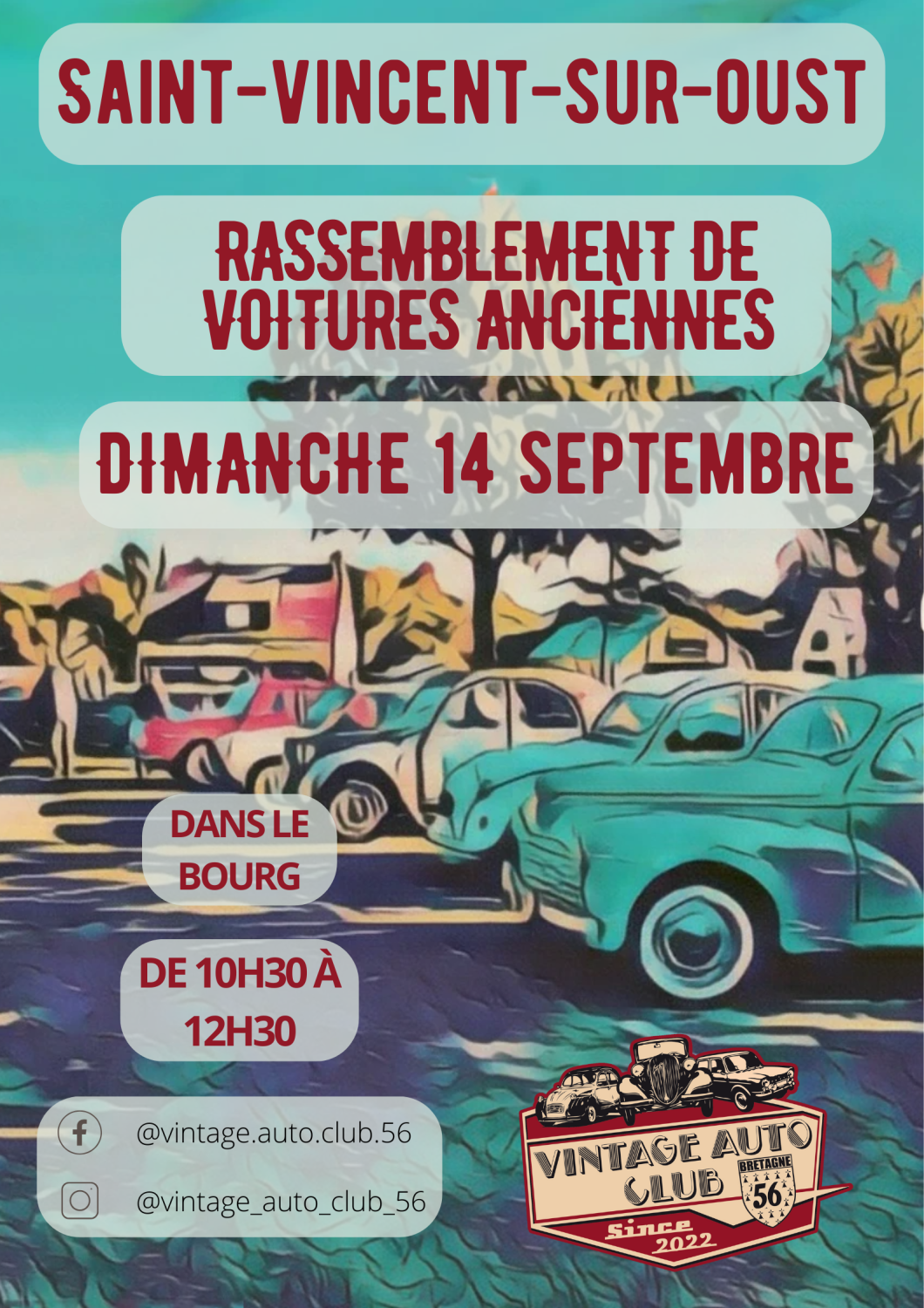 Rassemblement de véhicules anciens Dimanche 14 septembre de 10h30 à 12h30 Parking salle des sportsSt Vincent Démonstrations de véhicules anciens avec le VINTAGE AUTO CLUB 56 de Questembert.