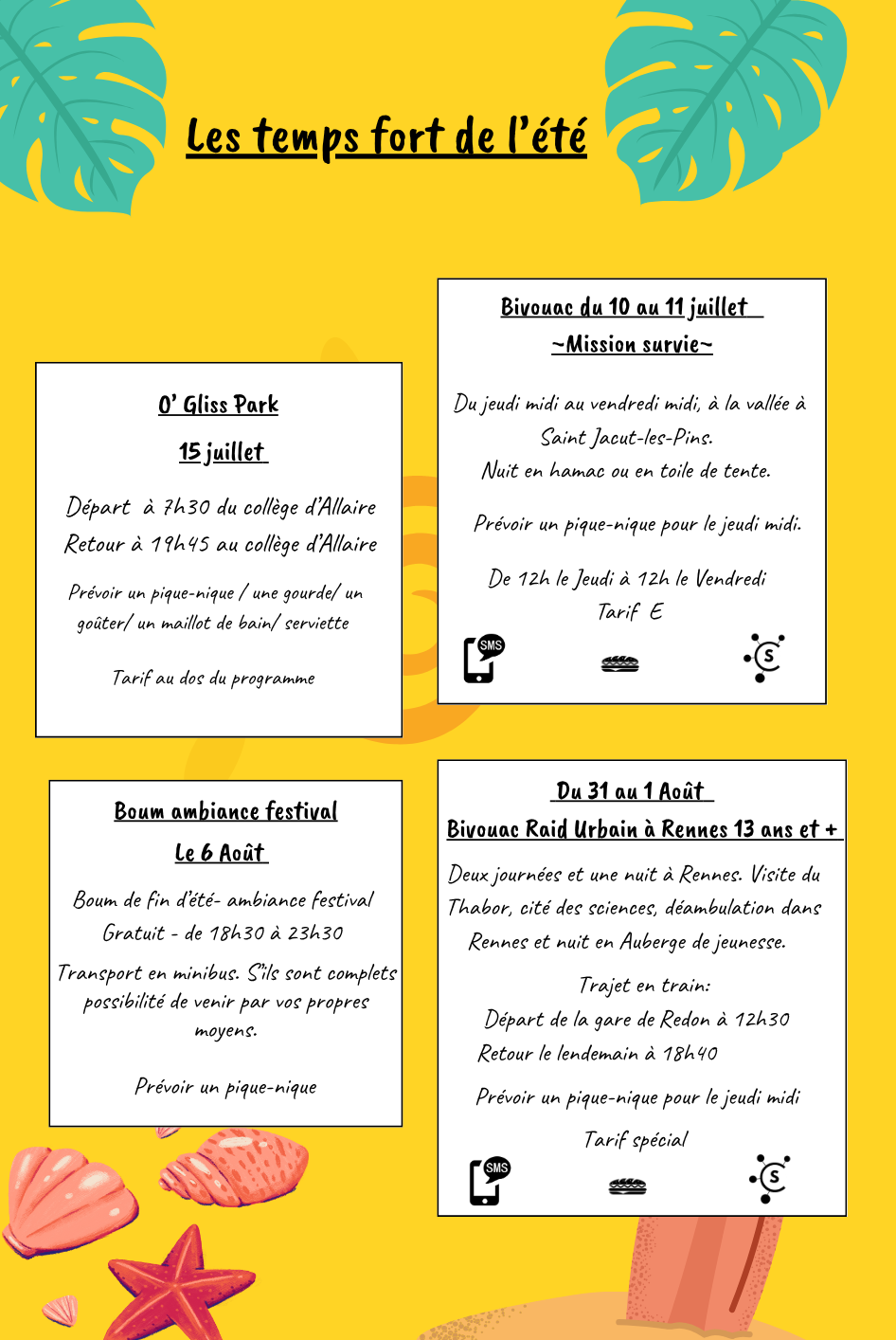 La rencontre des jeunes se fait par le biais d’ouverture "d’espaces jeunes", des temps qui permettent d’instaurer une confiance, de créer une relation avec eux et donc de soutenir et d’accompagner des envies de jeunes. Le programme propose des activités adaptées aux adolescents (soirées, sorties à l’extérieur, repas...).