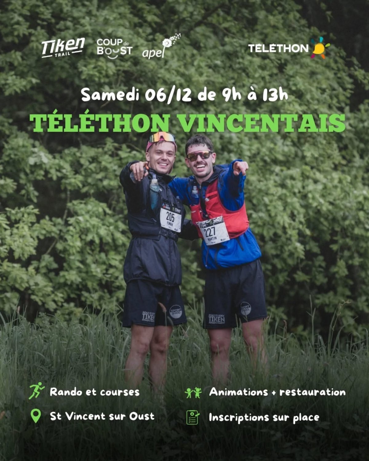 Cette année le Tiken Trail, Coup de b’Oust et l’APEL de l’école St Thérèse s’associent pour soutenir le Téléthon !!